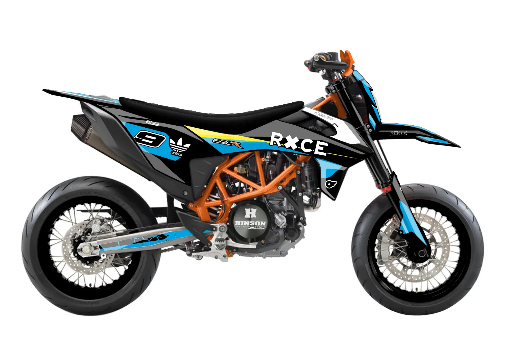 «Onlyfans» — готовый комплект графики серии Flow для KTM Street Graphic Kit KTM SMC-R 690 2019. В комплекте: графика на бак и боковые облицовки, крылья (переднее и заднее), передний щиток, номерные таблички, защита вилки. Материал: ПВХ-винил 80 мкр с холодной ламинацией 300 мкр, общая толщина 380 мкр; покрытие глянцевое или матовое на выбор. Устойчив к UV-излучению, воде, бензину и мойке высокого давления. Клей акриловый на сольвентной основе — постоянный, для гибких пластиков. На простых поверхностях монтируется без нагрева; для сложных изгибов рекомендуем фен. Этот пресет можно заказать как есть или взять за основу в конструкторе: поменять цвета, добавить стартовый номер и свой бренд. Производство — 3–5 рабочих дней, доставка по России СДЭКом или Почтой, по СНГ — курьерскими службами.
