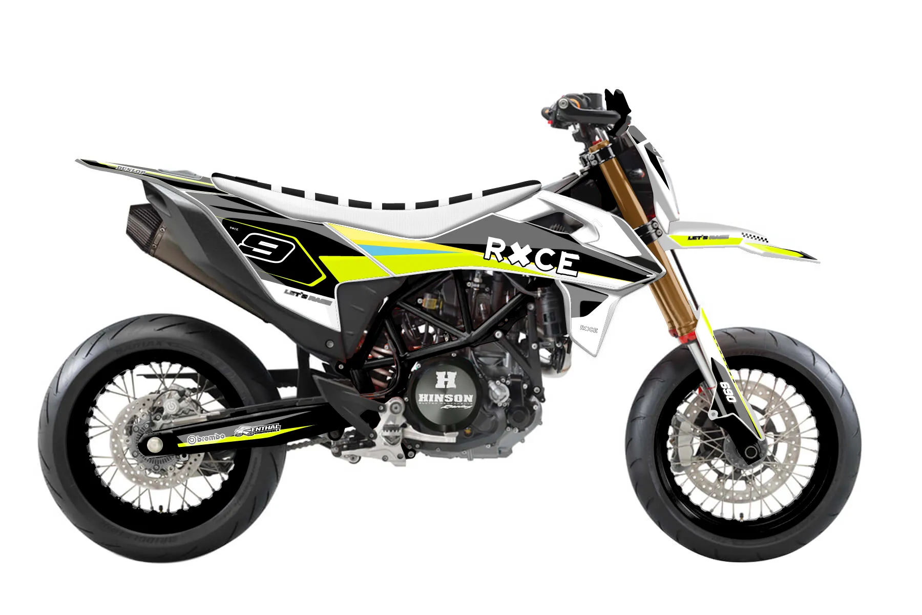 «Style Neon» — готовый комплект графики серии Flow для KTM Street Graphic Kit KTM SMC-R 690 2019. В комплекте: графика на бак и боковые облицовки, крылья (переднее и заднее), передний щиток, номерные таблички, защита вилки. Материал: ПВХ-винил 80 мкр с холодной ламинацией 300 мкр, общая толщина 380 мкр; покрытие глянцевое или матовое на выбор. Устойчив к UV-излучению, воде, бензину и мойке высокого давления. Клей акриловый на сольвентной основе — постоянный, для гибких пластиков. На простых поверхностях монтируется без нагрева; для сложных изгибов рекомендуем фен. Этот пресет можно заказать как есть или взять за основу в конструкторе: поменять цвета, добавить стартовый номер и свой бренд. Производство — 3–5 рабочих дней, доставка по России СДЭКом или Почтой, по СНГ — курьерскими службами.