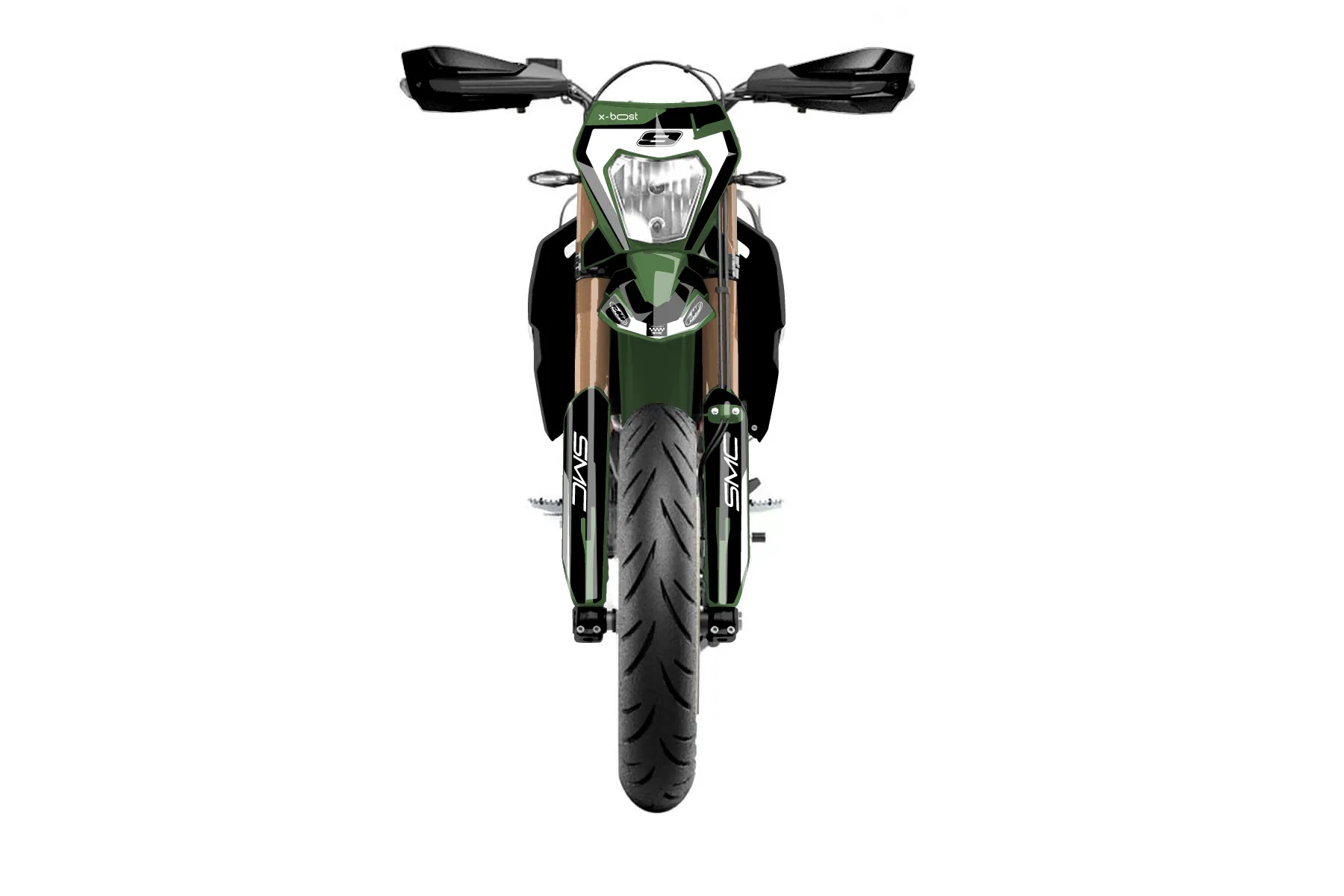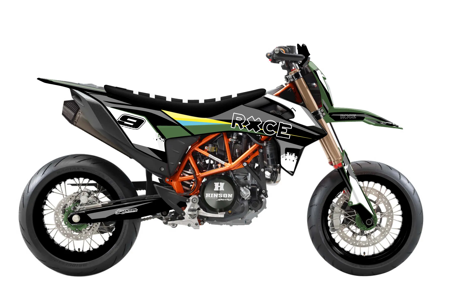 «Virtual» — готовый комплект графики серии Flow для KTM Street Graphic Kit KTM SMC-R 690 2019. В комплекте: графика на бак и боковые облицовки, крылья (переднее и заднее), передний щиток, номерные таблички, защита вилки. Материал: ПВХ-винил 80 мкр с холодной ламинацией 300 мкр, общая толщина 380 мкр; покрытие глянцевое или матовое на выбор. Устойчив к UV-излучению, воде, бензину и мойке высокого давления. Клей акриловый на сольвентной основе — постоянный, для гибких пластиков. На простых поверхностях монтируется без нагрева; для сложных изгибов рекомендуем фен. Этот пресет можно заказать как есть или взять за основу в конструкторе: поменять цвета, добавить стартовый номер и свой бренд. Производство — 3–5 рабочих дней, доставка по России СДЭКом или Почтой, по СНГ — курьерскими службами.