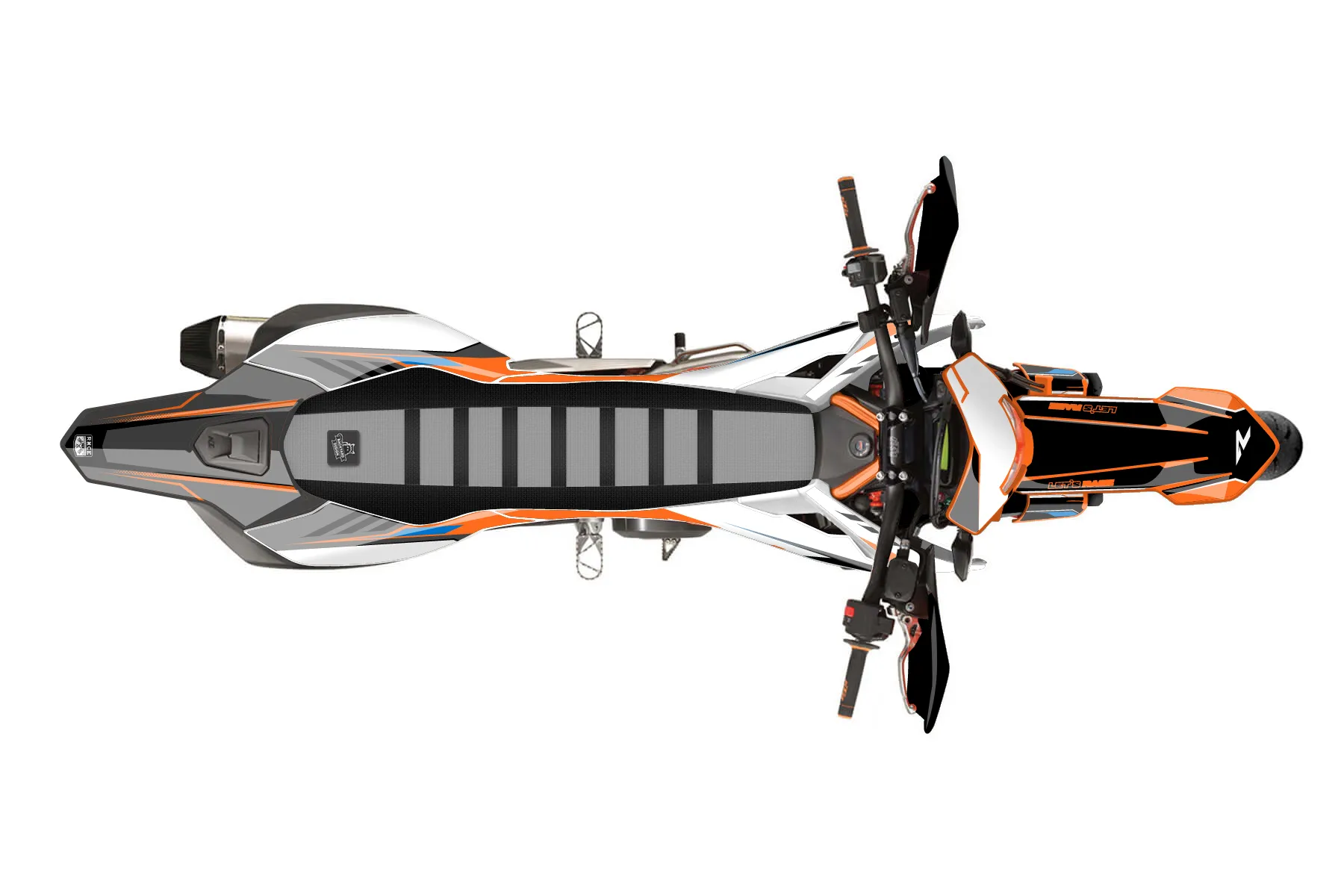 «tempting» — готовый комплект графики серии Maverick для KTM Street Graphic Kit KTM SMC-R 690 2019. В комплекте: графика на бак и боковые облицовки, крылья (переднее и заднее), передний щиток, номерные таблички, защита вилки. Материал: ПВХ-винил 80 мкр с холодной ламинацией 300 мкр, общая толщина 380 мкр; покрытие глянцевое или матовое на выбор. Устойчив к UV-излучению, воде, бензину и мойке высокого давления. Клей акриловый на сольвентной основе — постоянный, для гибких пластиков. На простых поверхностях монтируется без нагрева; для сложных изгибов рекомендуем фен. Этот пресет можно заказать как есть или взять за основу в конструкторе: поменять цвета, добавить стартовый номер и свой бренд. Производство — 3–5 рабочих дней, доставка по России СДЭКом или Почтой, по СНГ — курьерскими службами.