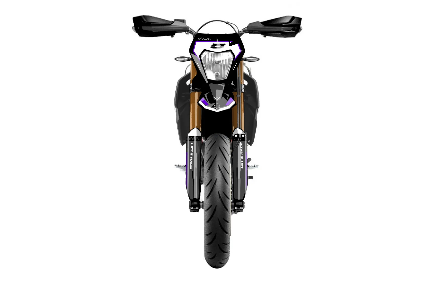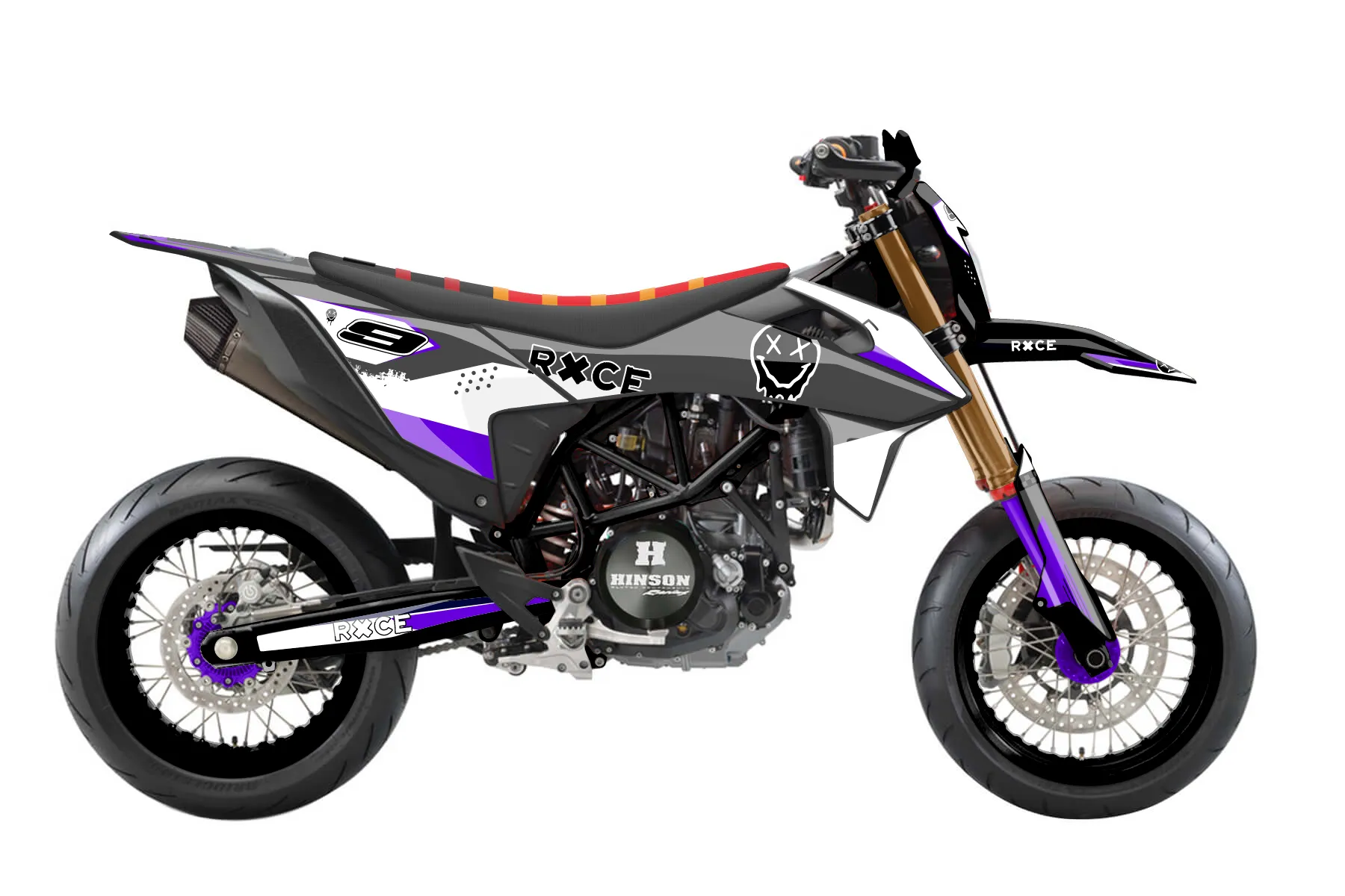 «Cold» — готовый комплект графики серии Staple для KTM Street Graphic Kit KTM SMC-R 690 2019. В комплекте: графика на бак и боковые облицовки, крылья (переднее и заднее), передний щиток, номерные таблички, защита вилки. Материал: ПВХ-винил 80 мкр с холодной ламинацией 300 мкр, общая толщина 380 мкр; покрытие глянцевое или матовое на выбор. Устойчив к UV-излучению, воде, бензину и мойке высокого давления. Клей акриловый на сольвентной основе — постоянный, для гибких пластиков. На простых поверхностях монтируется без нагрева; для сложных изгибов рекомендуем фен. Этот пресет можно заказать как есть или взять за основу в конструкторе: поменять цвета, добавить стартовый номер и свой бренд. Производство — 3–5 рабочих дней, доставка по России СДЭКом или Почтой, по СНГ — курьерскими службами.
