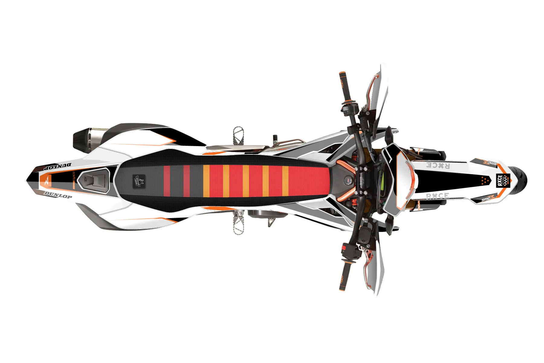 «Concrete» — готовый комплект графики серии Staple для KTM Street Graphic Kit KTM SMC-R 690 2019. В комплекте: графика на бак и боковые облицовки, крылья (переднее и заднее), передний щиток, номерные таблички, защита вилки. Материал: ПВХ-винил 80 мкр с холодной ламинацией 300 мкр, общая толщина 380 мкр; покрытие глянцевое или матовое на выбор. Устойчив к UV-излучению, воде, бензину и мойке высокого давления. Клей акриловый на сольвентной основе — постоянный, для гибких пластиков. На простых поверхностях монтируется без нагрева; для сложных изгибов рекомендуем фен. Этот пресет можно заказать как есть или взять за основу в конструкторе: поменять цвета, добавить стартовый номер и свой бренд. Производство — 3–5 рабочих дней, доставка по России СДЭКом или Почтой, по СНГ — курьерскими службами.