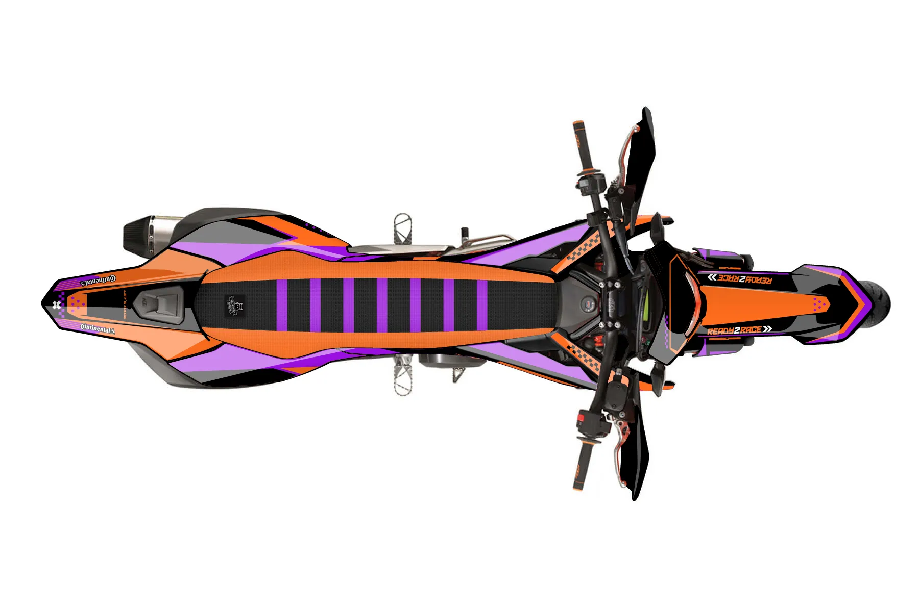 «CustomDesign» — готовый комплект графики серии Staple для KTM Street Graphic Kit KTM SMC-R 690 2019. В комплекте: графика на бак и боковые облицовки, крылья (переднее и заднее), передний щиток, номерные таблички, защита вилки. Материал: ПВХ-винил 80 мкр с холодной ламинацией 300 мкр, общая толщина 380 мкр; покрытие глянцевое или матовое на выбор. Устойчив к UV-излучению, воде, бензину и мойке высокого давления. Клей акриловый на сольвентной основе — постоянный, для гибких пластиков. На простых поверхностях монтируется без нагрева; для сложных изгибов рекомендуем фен. Этот пресет можно заказать как есть или взять за основу в конструкторе: поменять цвета, добавить стартовый номер и свой бренд. Производство — 3–5 рабочих дней, доставка по России СДЭКом или Почтой, по СНГ — курьерскими службами.
