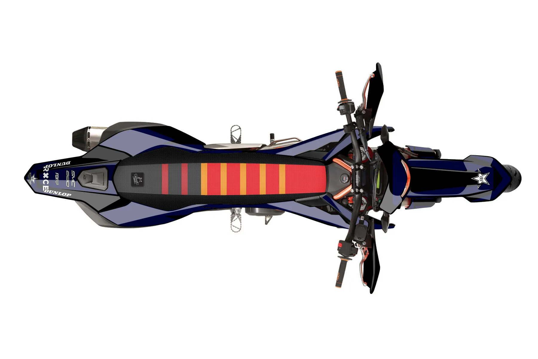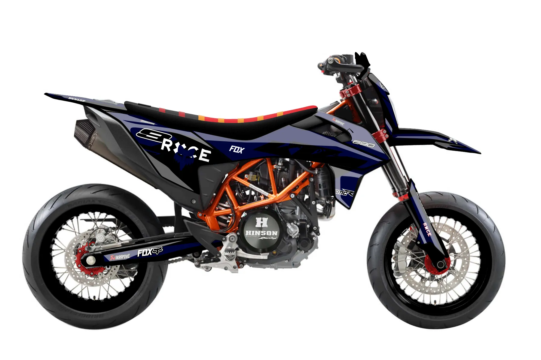 «CustomDesign» — готовый комплект графики серии Staple для KTM Street Graphic Kit KTM SMC-R 690 2019. В комплекте: графика на бак и боковые облицовки, крылья (переднее и заднее), передний щиток, номерные таблички, защита вилки. Материал: ПВХ-винил 80 мкр с холодной ламинацией 300 мкр, общая толщина 380 мкр; покрытие глянцевое или матовое на выбор. Устойчив к UV-излучению, воде, бензину и мойке высокого давления. Клей акриловый на сольвентной основе — постоянный, для гибких пластиков. На простых поверхностях монтируется без нагрева; для сложных изгибов рекомендуем фен. Этот пресет можно заказать как есть или взять за основу в конструкторе: поменять цвета, добавить стартовый номер и свой бренд. Производство — 3–5 рабочих дней, доставка по России СДЭКом или Почтой, по СНГ — курьерскими службами.