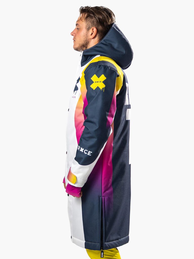 боковые разрезы снизу с застёжками — можно расстегнуть для свободного шага;
